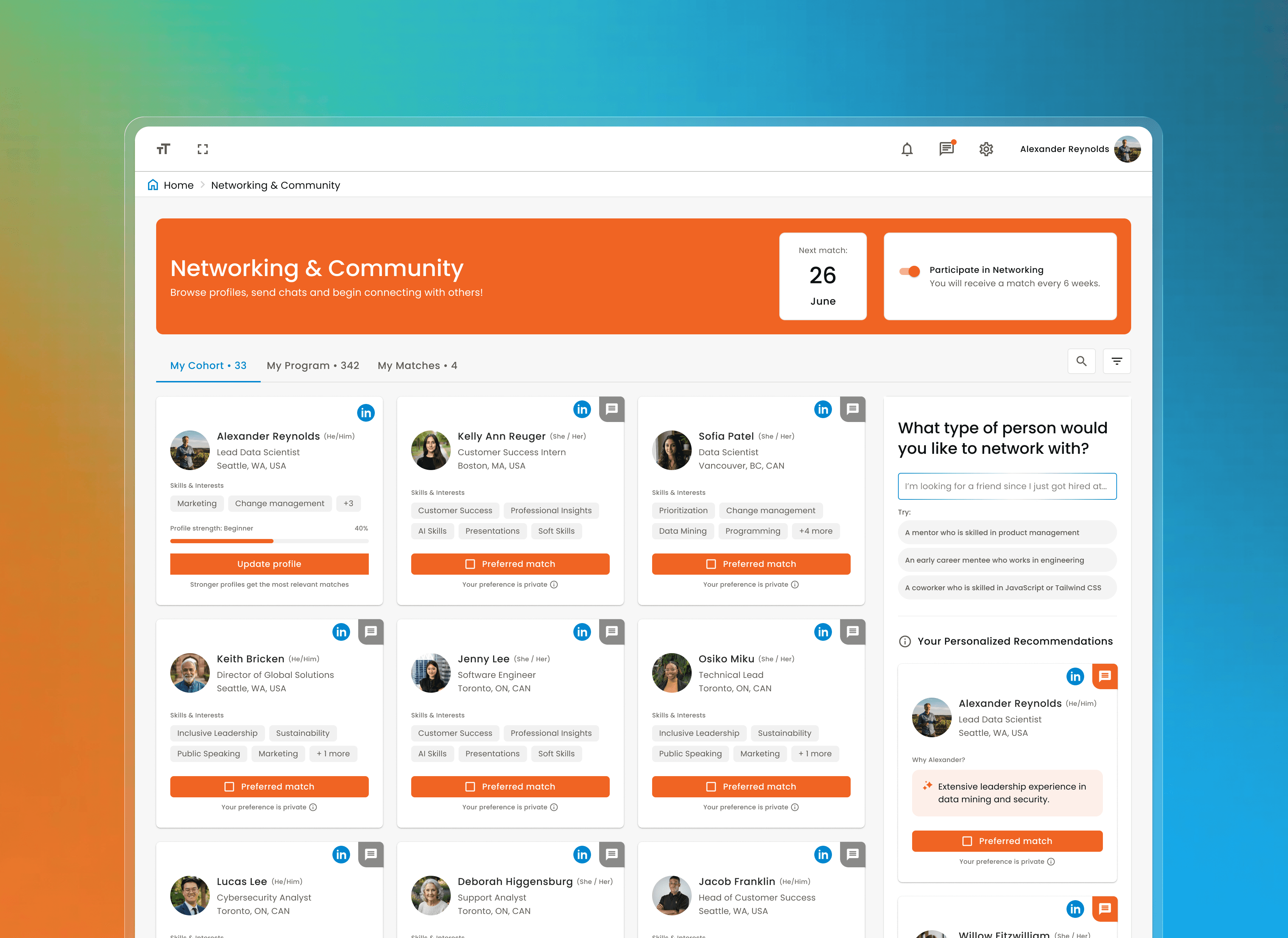 Networking isn’t a daily habit—people do it occasionally, driven by specific needs or goals. To succeed, we needed to focus on relevance by helping people make the right connections at the right time, rather than trying to maximize long-term participation.