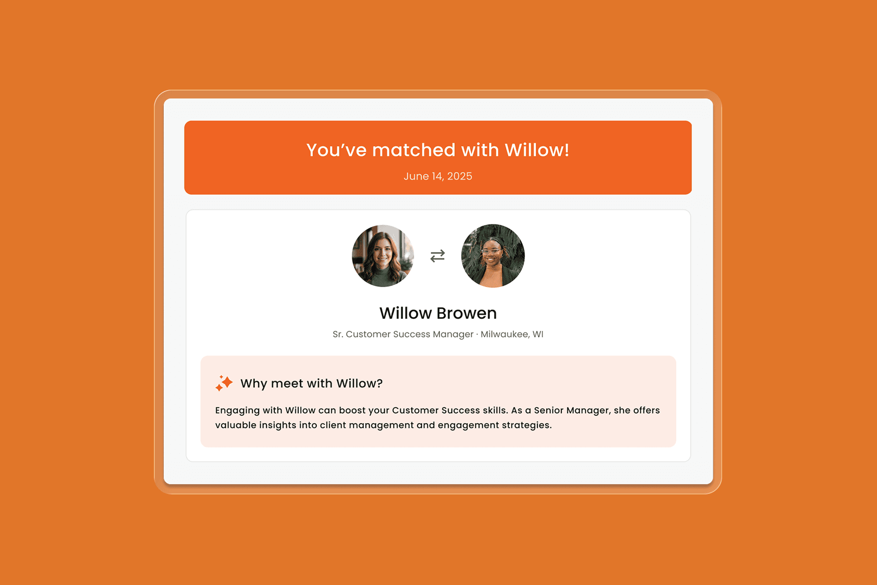 a simple guided program set up to ensure matches are high quality and aligned with best practices