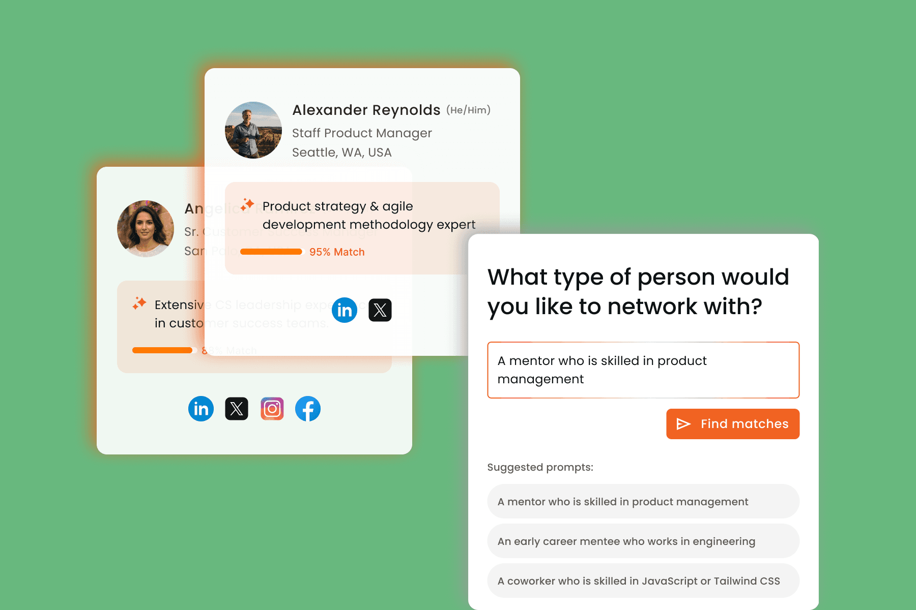 Users describe what they are looking for in natural language, and AI translates this intent into structured matching signals that directly influence their recommendations. This allows matches to reflect real, evolving goals rather than static profile data, giving users ownership over outcomes while increasing relevance without increasing match volume.